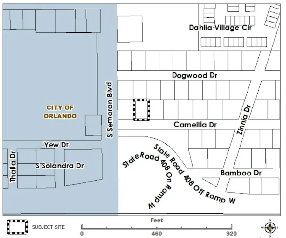 The property is located at 5709 Camellia Drive; generally located north of Lake Underhill Rd, west of N Goldenrod Rd, south of Dahlia Dr, and east of S Semoran Blvd.