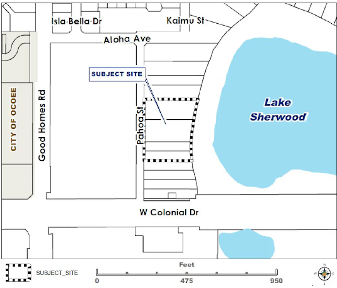 The property is located in District 6 at 803 and 833 Pahoa Street; consisting of four parcels generally located east of Pahoa Street, south of Aloha Avenue, west of Lake Sherwood, and about 440 feet north of W Colonial Drive.